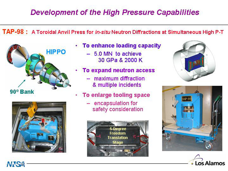 Jianzhong Zhang of the Manuel Lujan Jr. Neutron Scattering Center (LANSCE-12) sets up an experiment in a toroidal anvil press, one of the high-pressure vessels Zhang and colleague Yusheng Zhao used to discover the glass formation in pure zirconium metal. The studied material was sitting at the center of the high-pressure cell (held with Dr. Zhang's hands), which can be set to conditions up to 100,000 times atmospheric pressure and to 1,500 degrees Kelvin